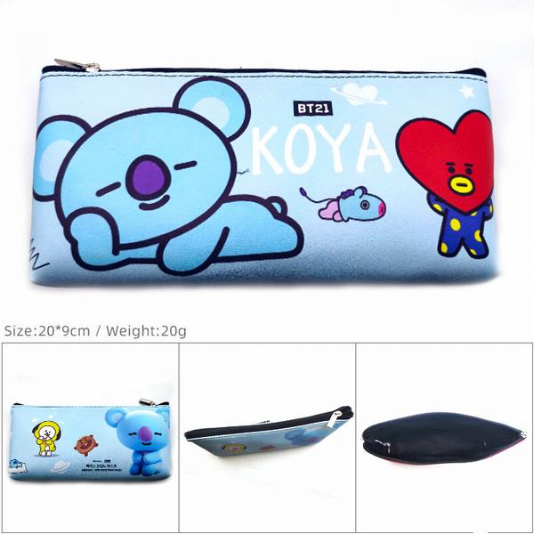 BTS防弹少年团 蓝色小熊 PU印刷学生文具盒文具袋收纳袋零钱包 18X5X5CM 45G 2个起批
