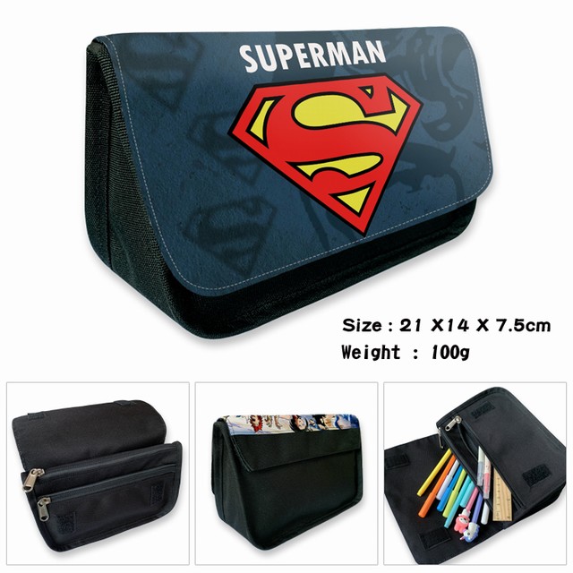 超人-1B 动漫双层多功能大容量帆布学生笔袋文具盒钱包 21X14X7.5CM 100G