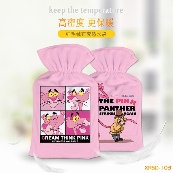 XRSD103-粉红豹 动漫细毛绒可拆洗橡胶热水袋