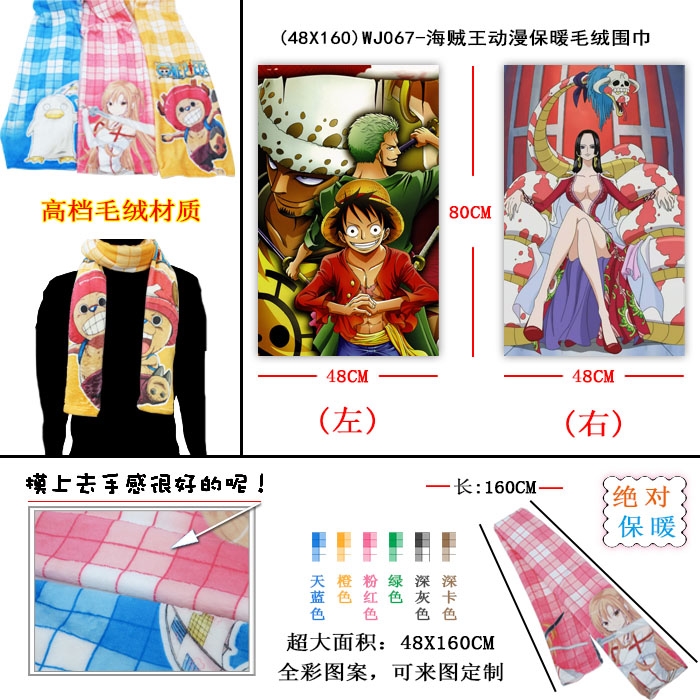 WJ067海贼王动漫保暖毛绒围巾48X160