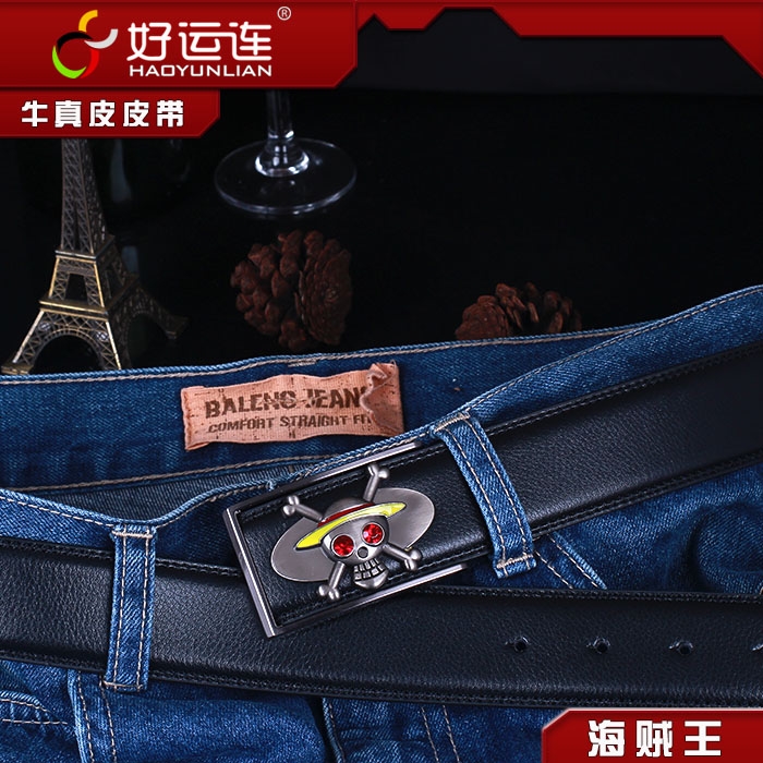 海贼王合金扣头枪色草帽路飞标志黑色真皮皮带