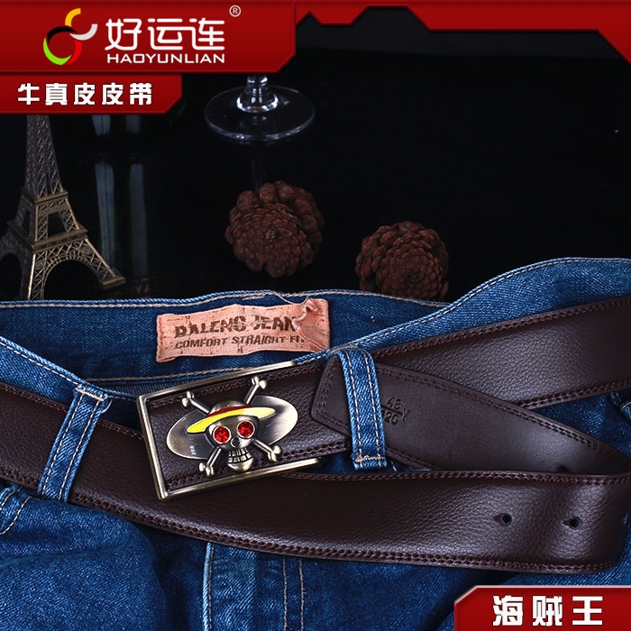 - 海贼王合金扣头古铜色草帽路飞标志黑色真皮皮带 ¥12.90