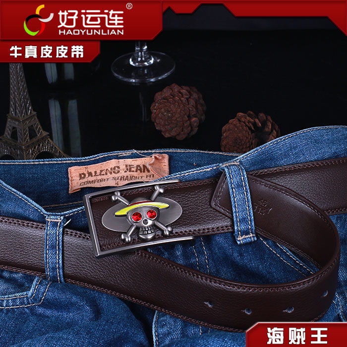 海贼王合金扣头枪色草帽路飞标志咖啡色真皮皮带