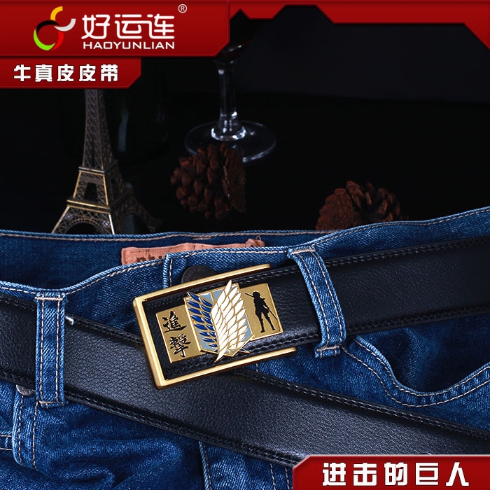 进击的巨人合金扣头金色调查兵团标志黑色真皮皮带