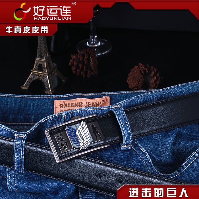 - 进击的巨人合金扣头金色调查兵团标志黑色真皮皮带 ¥12.90