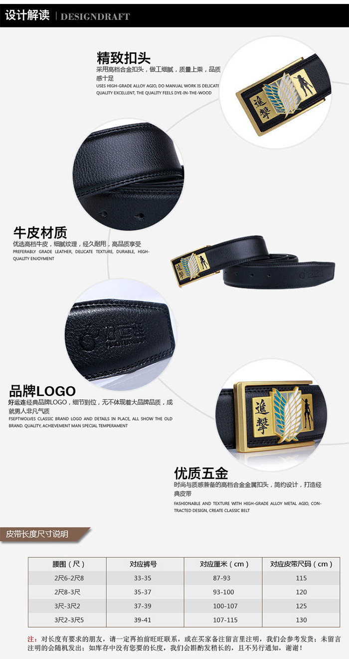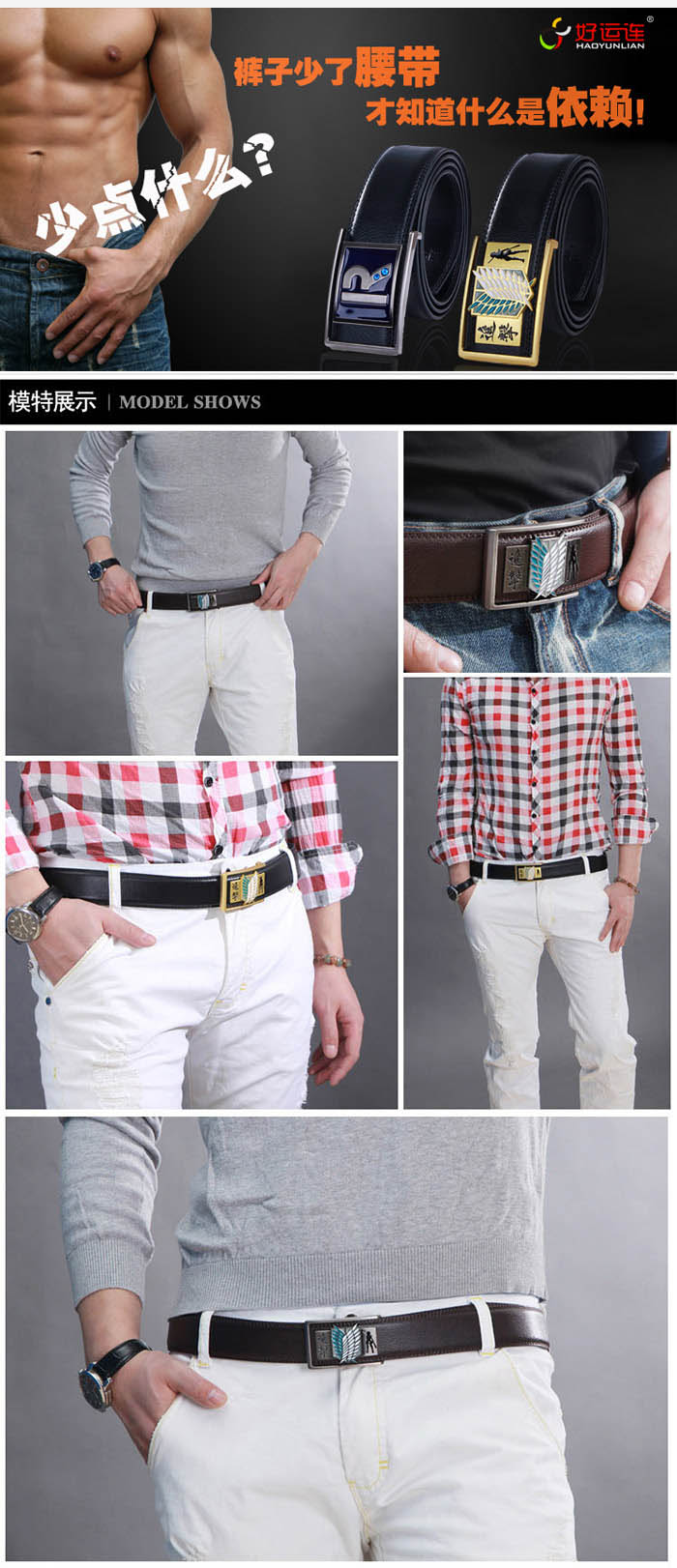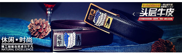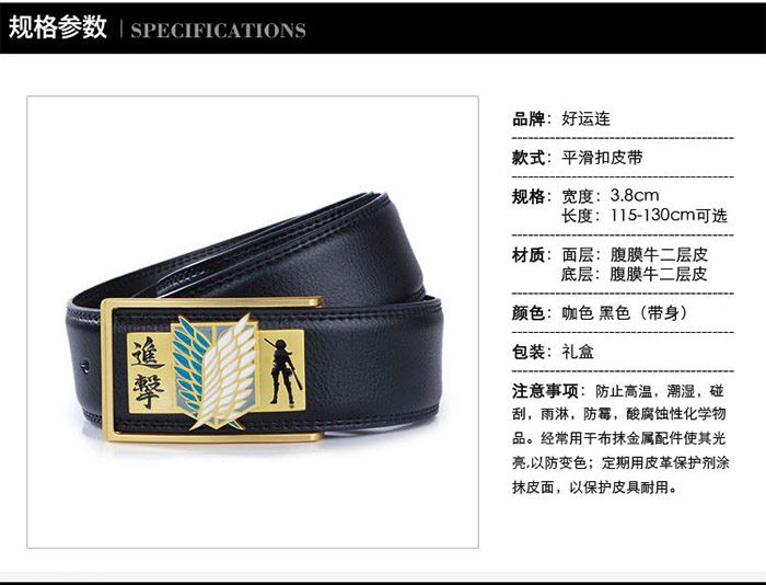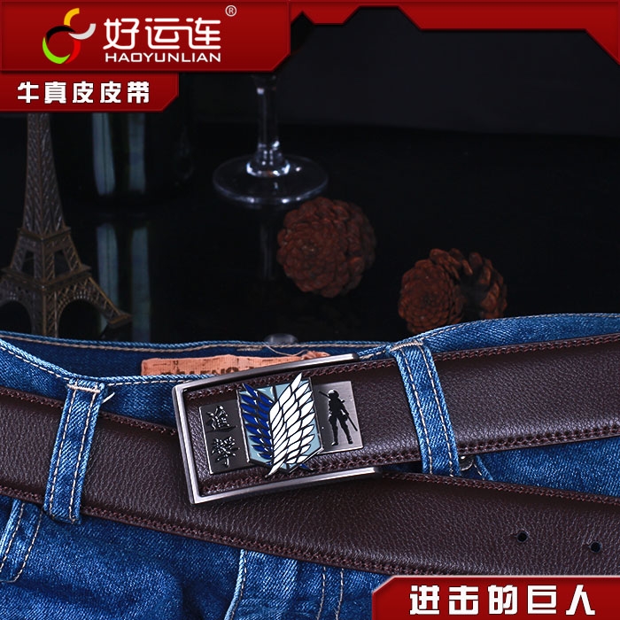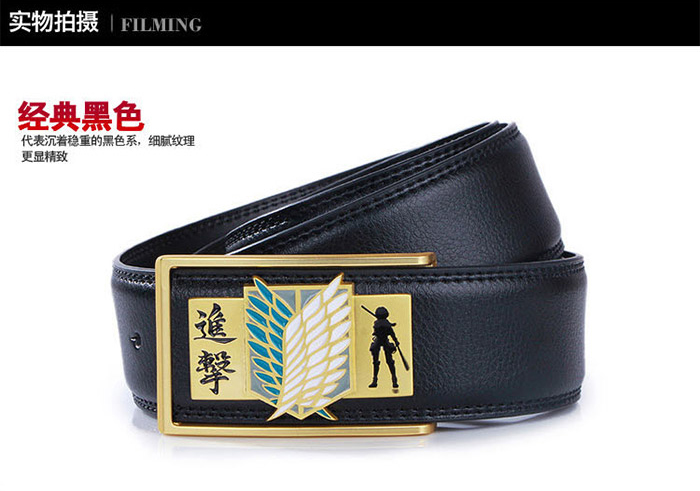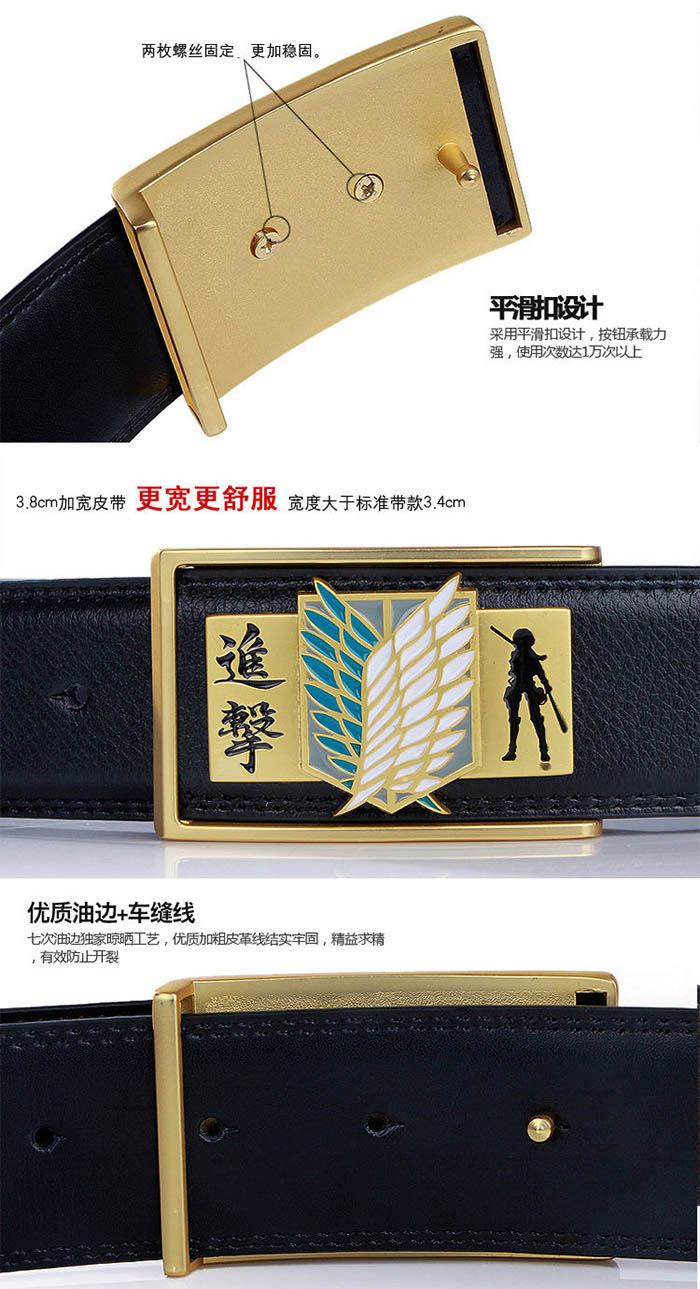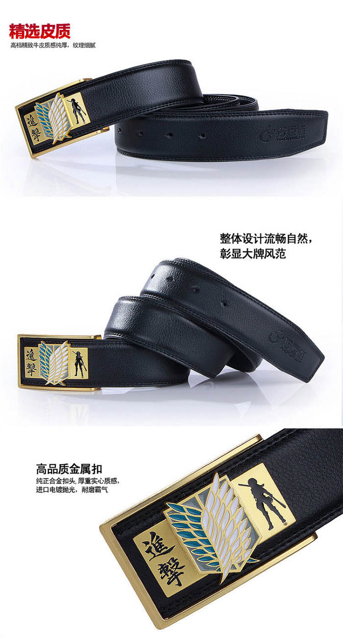 - 进击的巨人合金扣头金色调查兵团标志黑色真皮皮带 ¥12.90