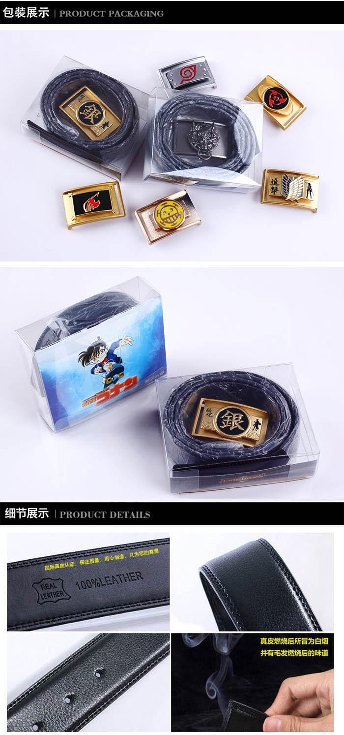 - 进击的巨人合金扣头银色调查兵团标志黑色真皮皮带 ¥12.90