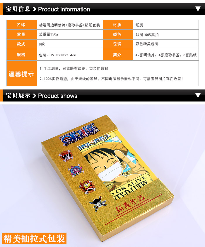 - 海贼王42张精装明信片配有4张磨砂书签8张贴纸套装 ¥23.20