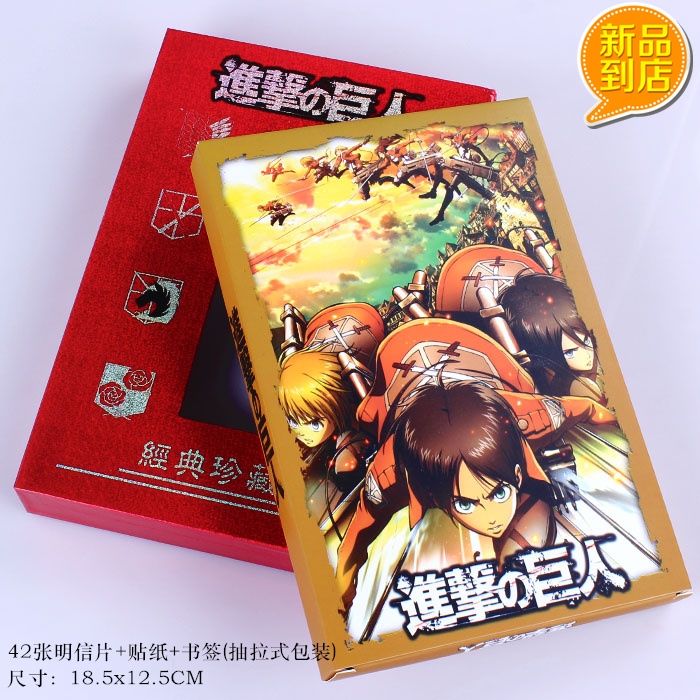 进击的巨人42张精装明信片配有4张磨砂书签8张贴纸套装
