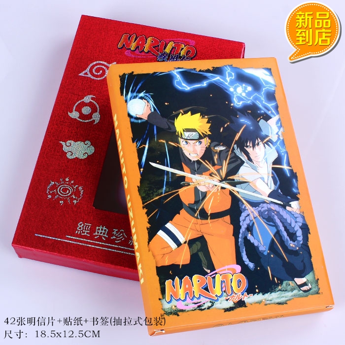 火影忍者42张精装明信片配有4张磨砂书签8张贴纸套装