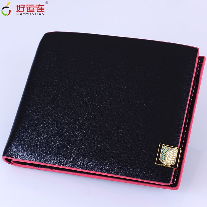 进击的巨人调查兵团金色小号标志进口PU皮短款红色油边钱包