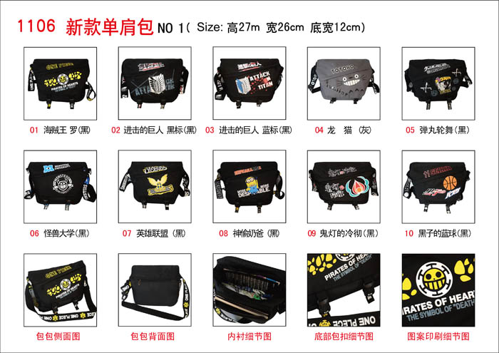 怪兽大学黑色新款潮流悠闲学生尼龙布挎包