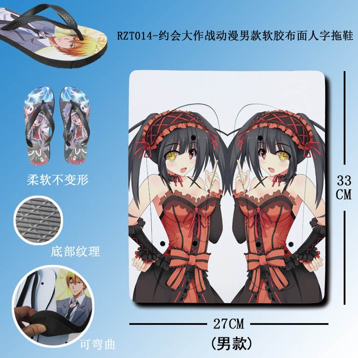 RZT014约会大作战动漫男款软胶布面人字拖鞋(可来图定制)42码
