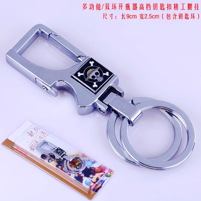 动漫主题钥匙扣-海贼王骷髅头标志银色开瓶器双环高档钥匙扣