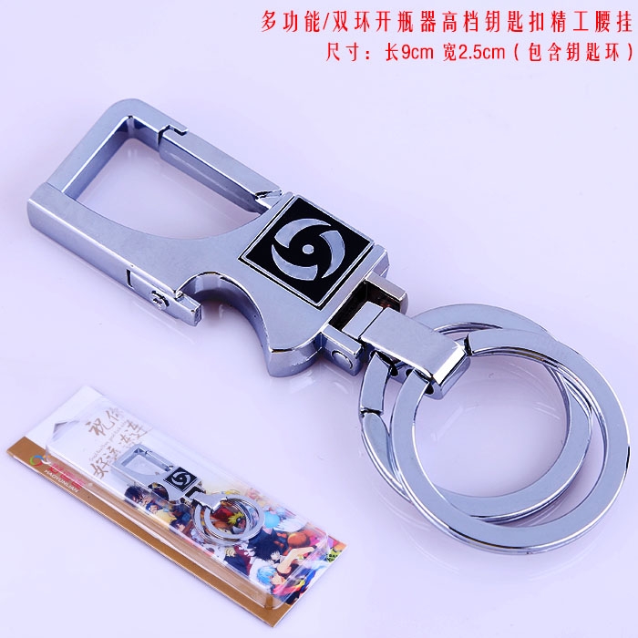 动漫主题钥匙扣-火影忍者卡卡西标志银色开瓶器双环高档钥匙扣