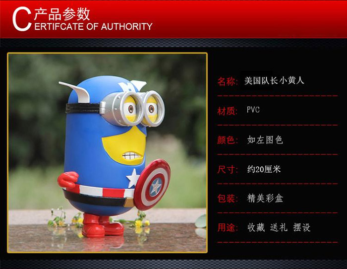 神偷奶爸小黄超萌美国队长版盒装手办20CM