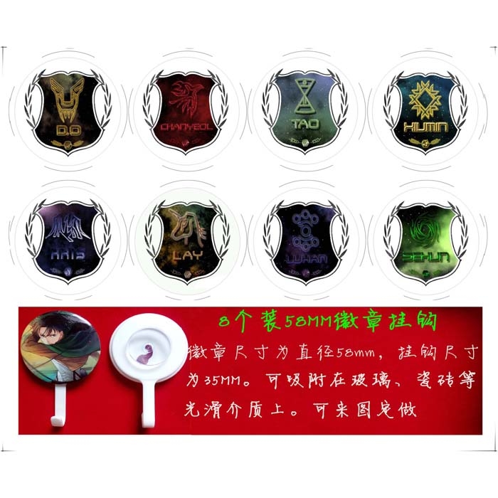 EXO成员标志8只装一套58MM吸盘挂钩