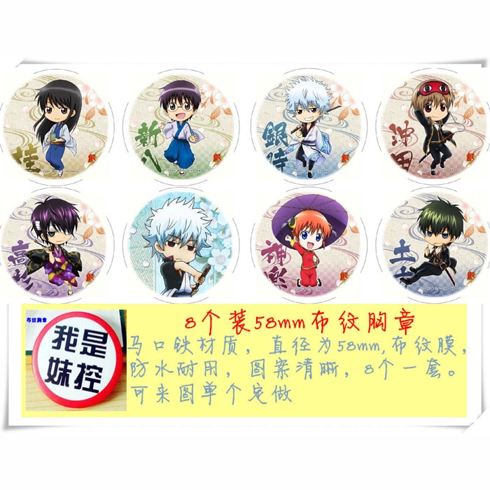 银魂Q版人物8款一套58MM圆形布纹胸针
