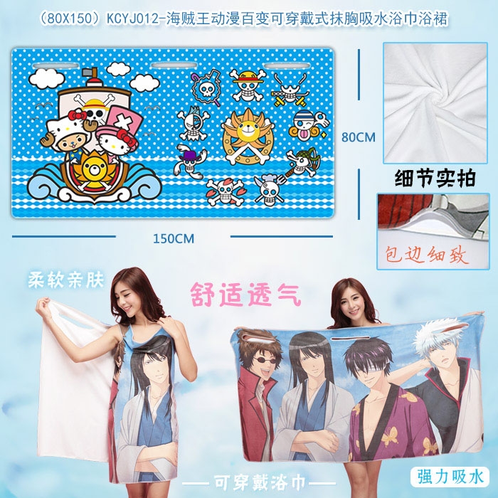KCYJ012-海贼王动漫百变可穿戴式抹胸吸水浴巾浴裙80X150