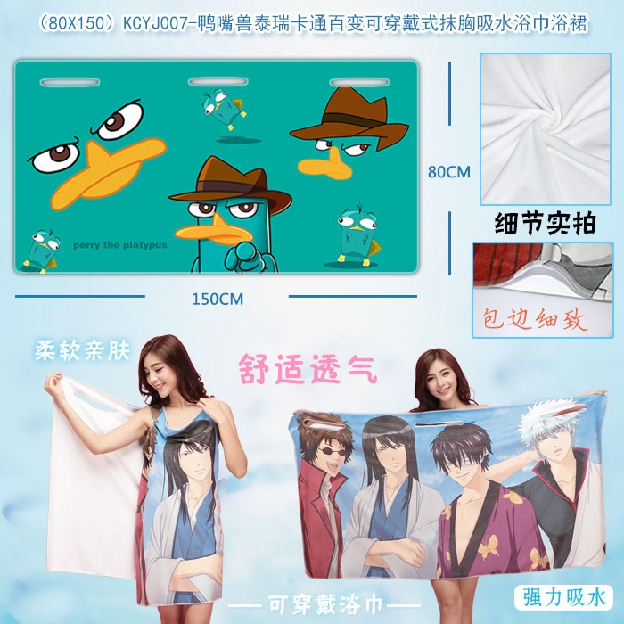 KCYJ007-鸭嘴兽泰瑞卡通百变可穿戴式抹胸吸水浴巾浴裙80X150