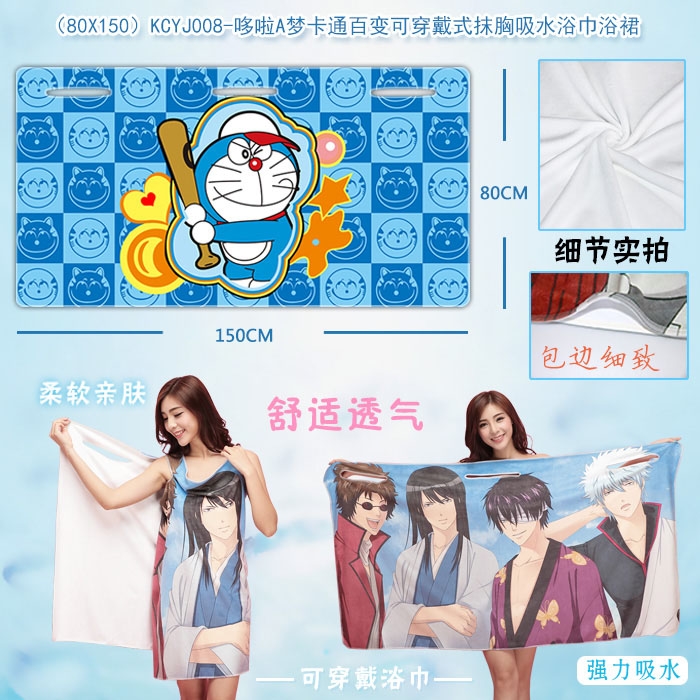 KCYJ008-哆啦A梦卡通百变可穿戴式抹胸吸水浴巾浴裙80X150
