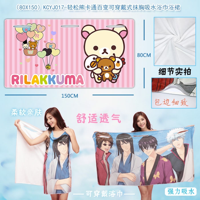 KCYJ017-轻松熊卡通百变可穿戴式抹胸吸水浴巾浴裙80X150