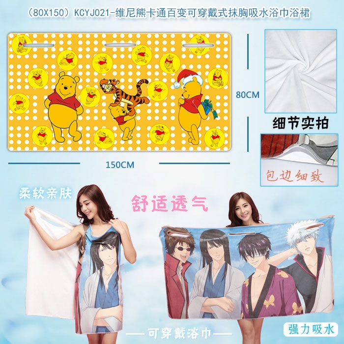 KCYJ021-维尼熊卡通百变可穿戴式抹胸吸水浴巾浴裙80X150