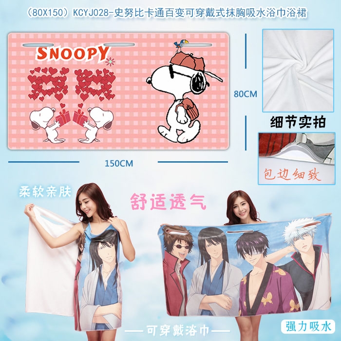 KCYJ028-史努比卡通百变可穿戴式抹胸吸水浴巾浴裙80X150