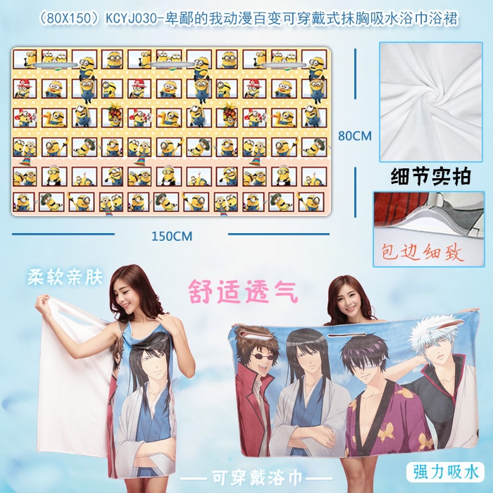 KCYJ030-神偷奶爸动漫百变可穿戴式抹胸吸水浴巾浴裙80X150