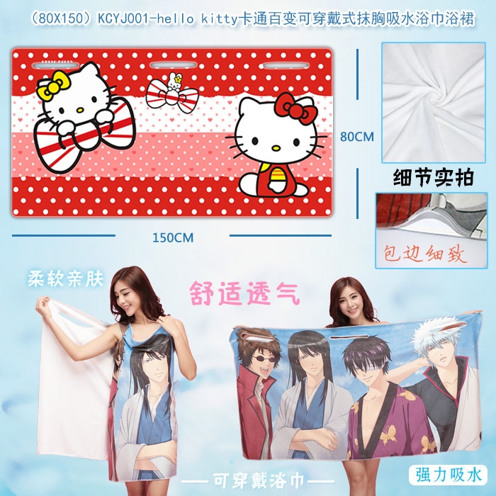 KCYJ001-hello kitty卡通百变可穿戴式抹胸吸水浴巾浴裙80X150