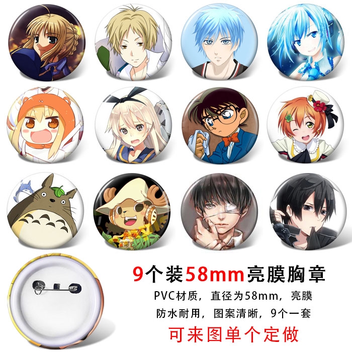 多款热门混动漫9个一套圆形亮膜胸章胸针58MM
