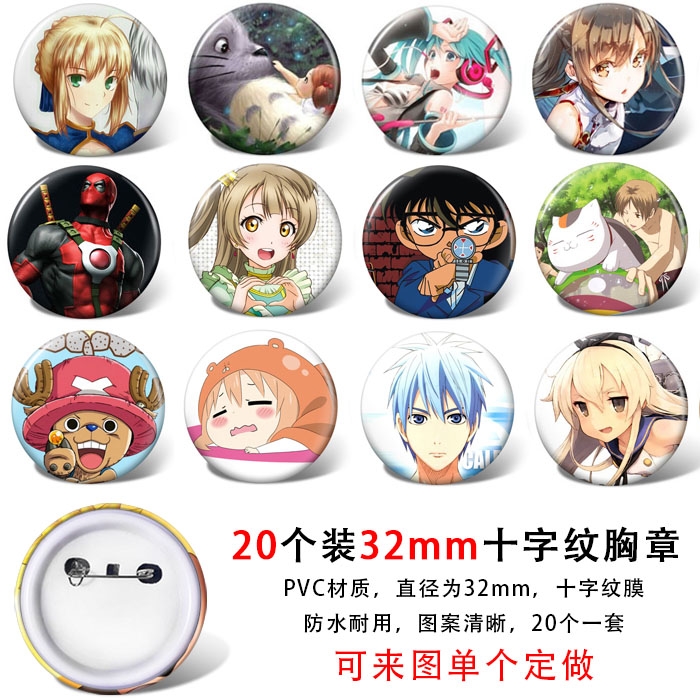 多款热门混动漫20个一套圆形布纹膜胸章32MM