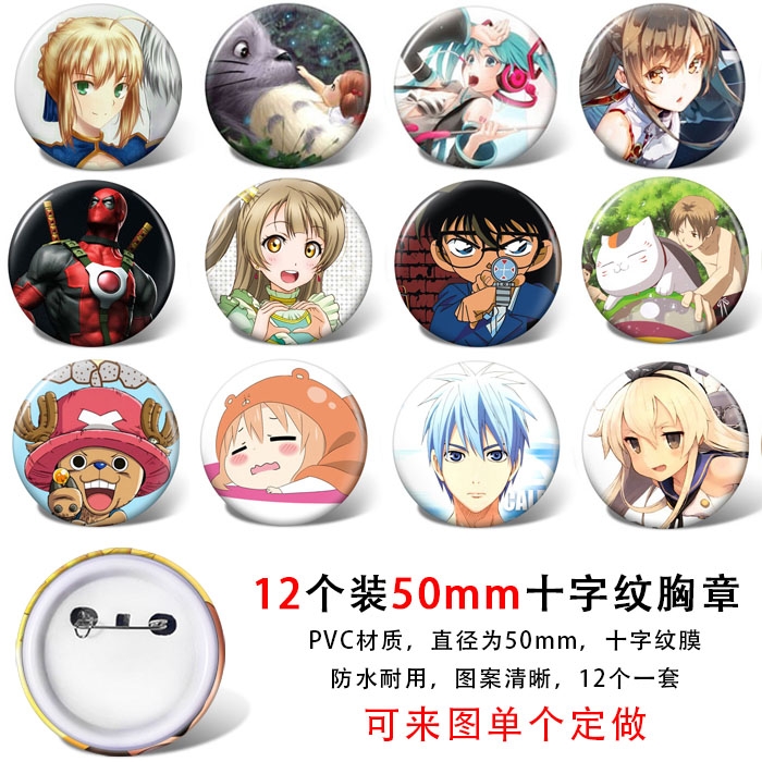 多款热门混动漫12个一套圆形布纹膜胸章50MM