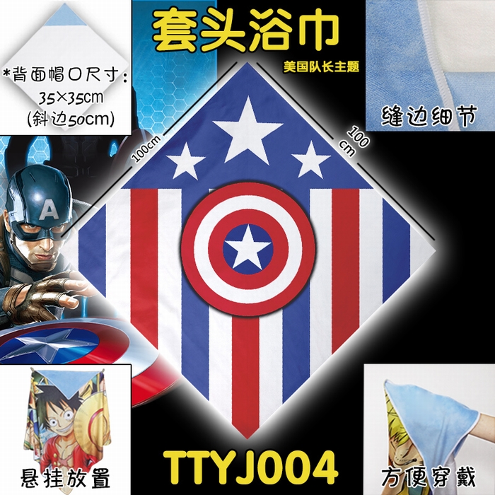 TTYJ004-美国队长宝宝套头浴巾(可来图定制)