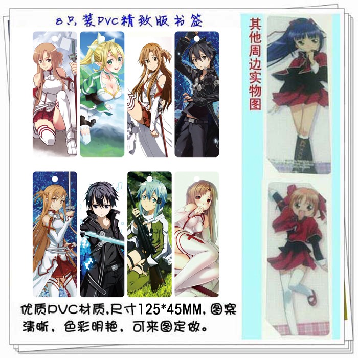 刀剑神域8只装PVC精致版磨砂书签随机A款5套起批