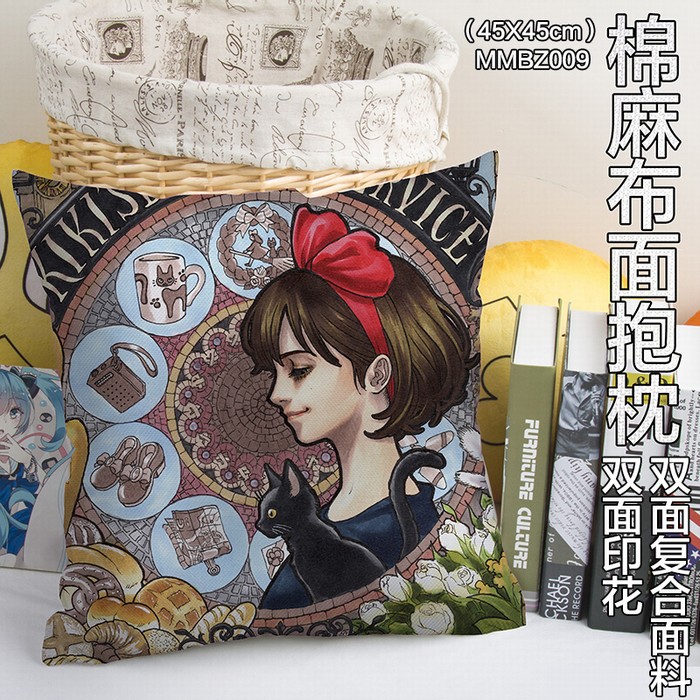 MMBZ009-魔女宅急便动漫全彩棉麻抱枕45X45CM