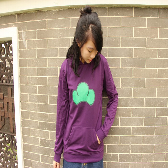 阿松长袖连帽薄款纯棉卫衣紫色M L XL XXL