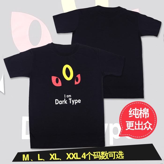 宠物小精灵月伊贝图案黑色纯棉T恤M