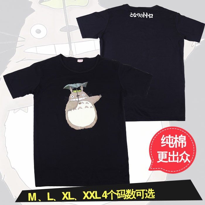 龙猫图案黑色纯棉T恤 L XL XXL