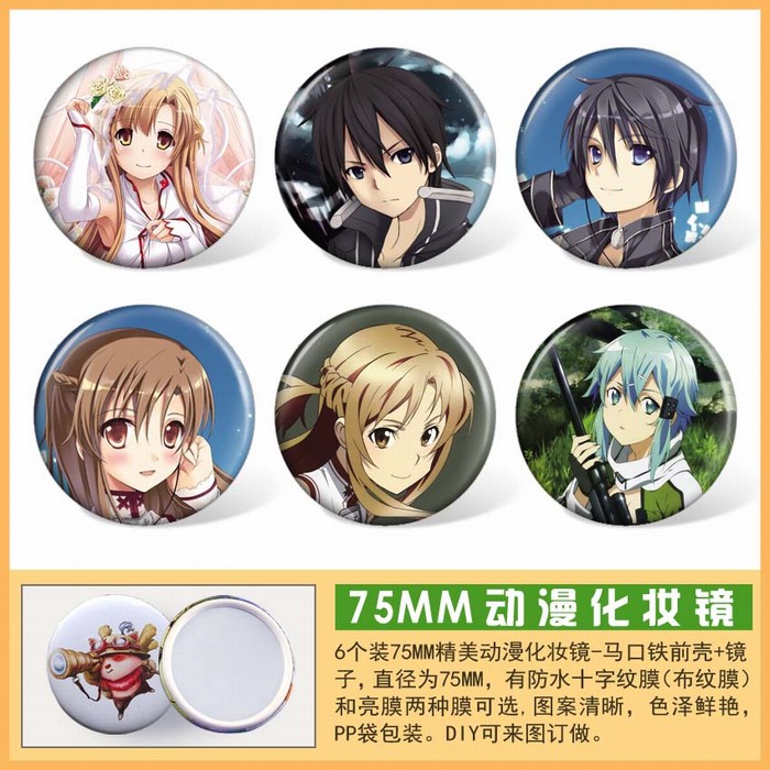刀剑神域6款一套金属圈圆形镜子75MM