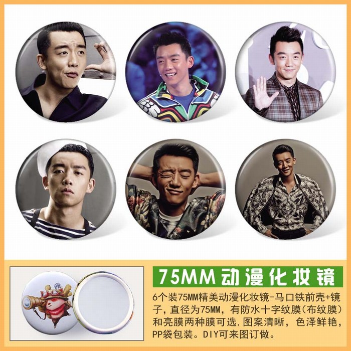 奔跑吧兄弟郑恺6款一套金属圈圆形镜子75MM