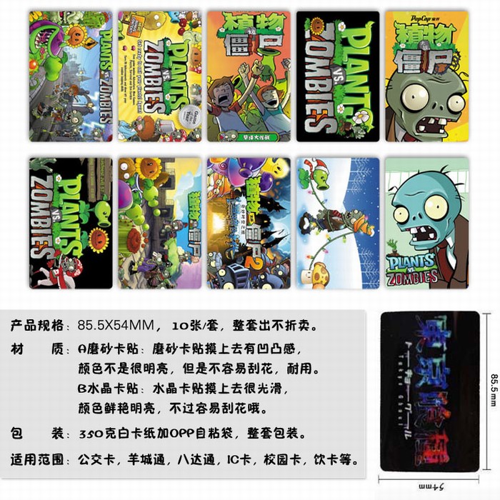植物大战僵尸一套10个装磨砂卡贴5套起批