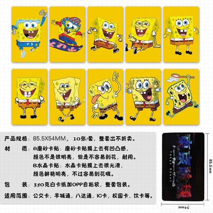 海绵宝宝一套10个装磨砂卡贴5套起批