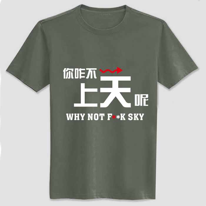 老司机咋不上天呢标志纯棉短袖圆领T恤军绿色M L XL XXL XXXL