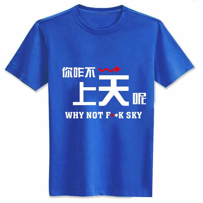 老司机咋不上天呢标志纯棉短袖圆领T恤天蓝色M L XL XXL XXXL