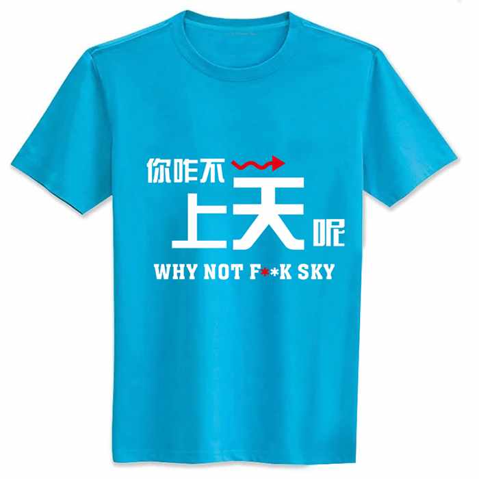 老司机咋不上天呢标志纯棉短袖圆领T恤浅蓝色M L XL XXL XXXL