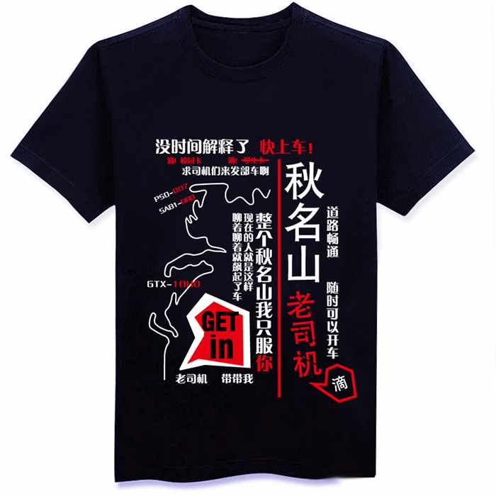 老司机秋名山标志纯棉短袖圆领T恤深宝蓝色M L XL XXL XXXL