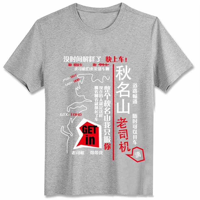 老司机秋名山标志纯棉短袖圆领T恤花灰色M L XL XXL XXXL