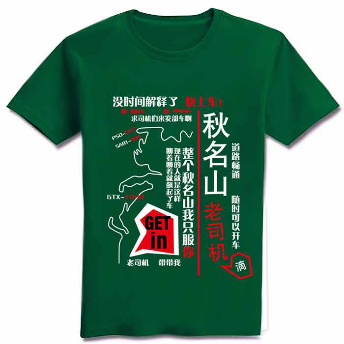 老司机秋名山标志纯棉短袖圆领T恤草绿色M L XL XXL XXXL