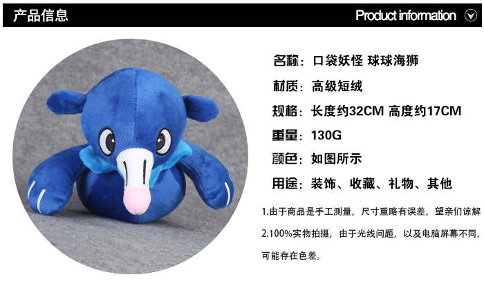 宠物小精灵球球海狮毛绒公仔高17CM